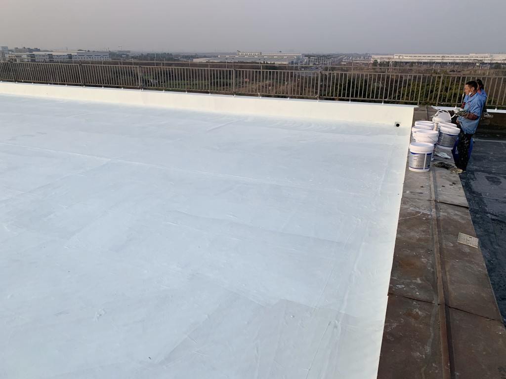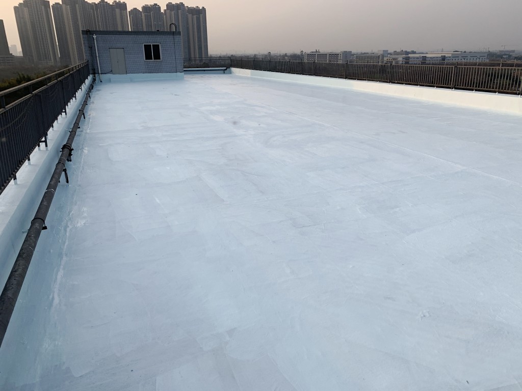 最終我們公司采取的方案是,采用我公司的聚合物防水涂料、SYR金屬屋面專用防水涂料配合專用縫織聚酯布進(jìn)行施工,先針對屋頂?shù)纳炜s縫加強(qiáng)處理,然后再大面積施工,施工后的表層SYR金屬屋面專用防水涂料由于是專門針對裸露屋頂使用的,可以經(jīng)受太陽直接暴曬,并且還具有反射隔熱作用,夏季屋頂降溫效果明顯。