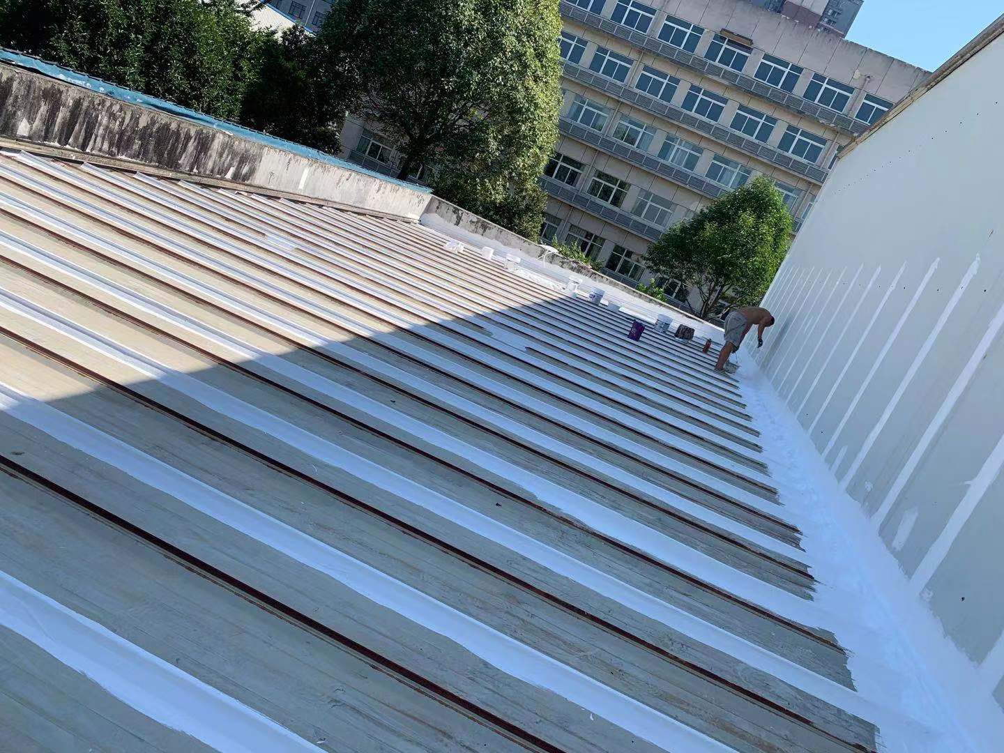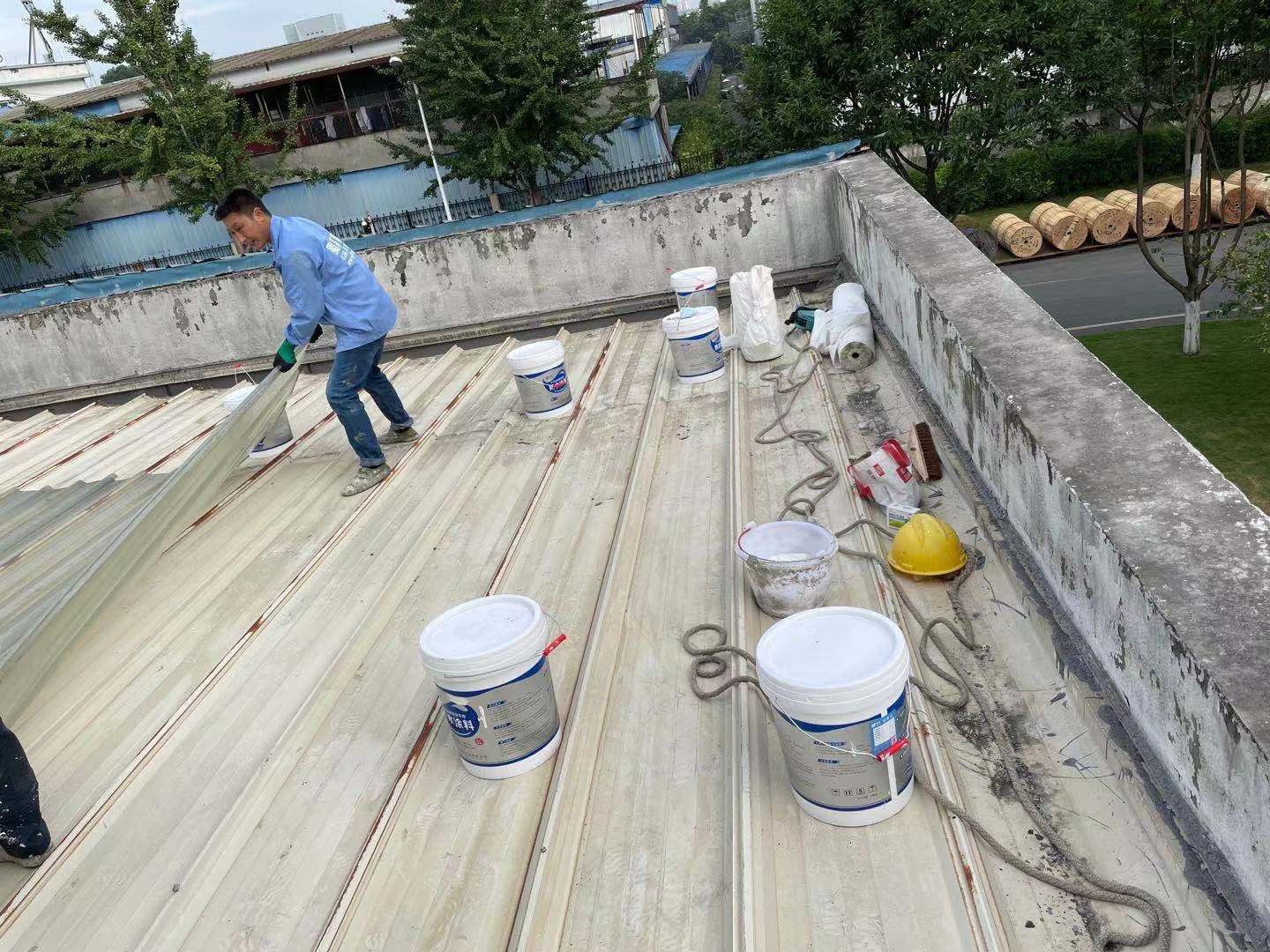我公司于2021年8月施工的四川省成都市高新技術產業開發區(西區)西區大道1577號富通光纖光纜(成都)有限公司廠房彩鋼頂防水補漏施工,廠房之前下雨漏水較為嚴重,業主之前也采取了一些方式處理,但是并未解決到問問題,下雨依然漏雨厲害,后面我公司人員到現場進行勘察分析之后,建議采用SYR金屬屋面專用防水涂料配合專用縫織聚酯布進行發送施工。業主方經過考察研究后決定采用我公司建議方案。我公司施工后很好的解決了此廠房彩鋼頂的漏雨難題。