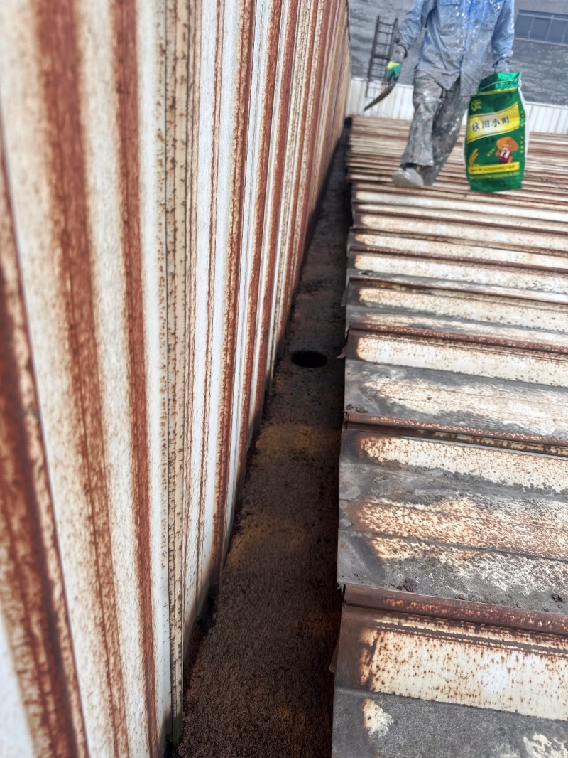 在施工前,蜀禹防水公司的專業團隊首先對廠房的彩鋼瓦屋面和天溝進行了徹底的清理。他們清除了表面的污垢、銹跡和舊防水層,確?;娓蓛簟⑵秸?,為后續的防水施工打下了堅實的基礎。