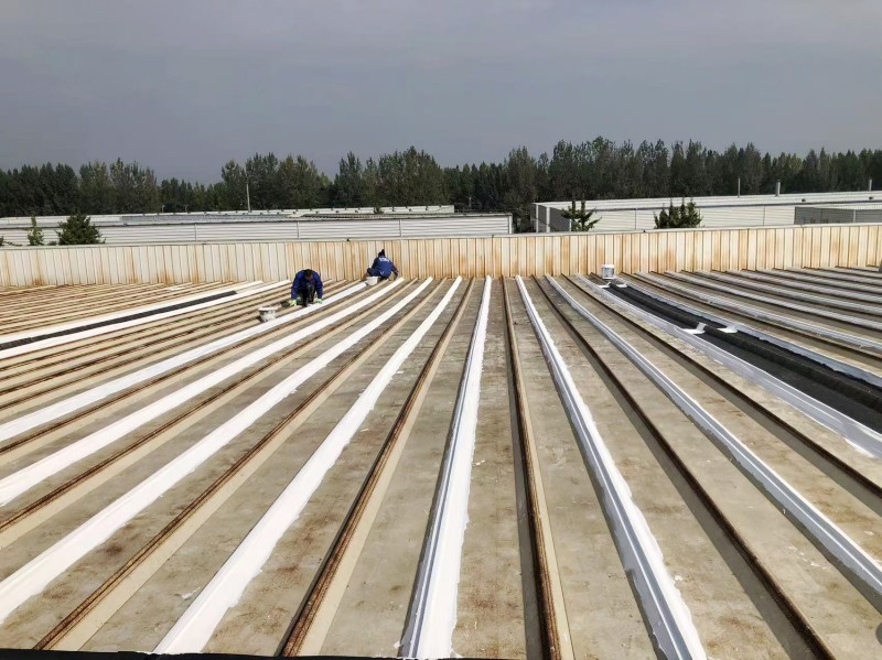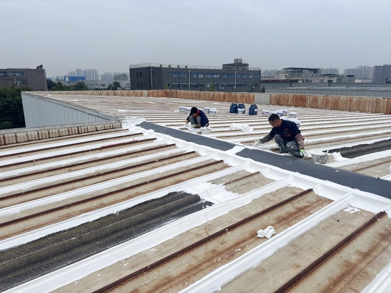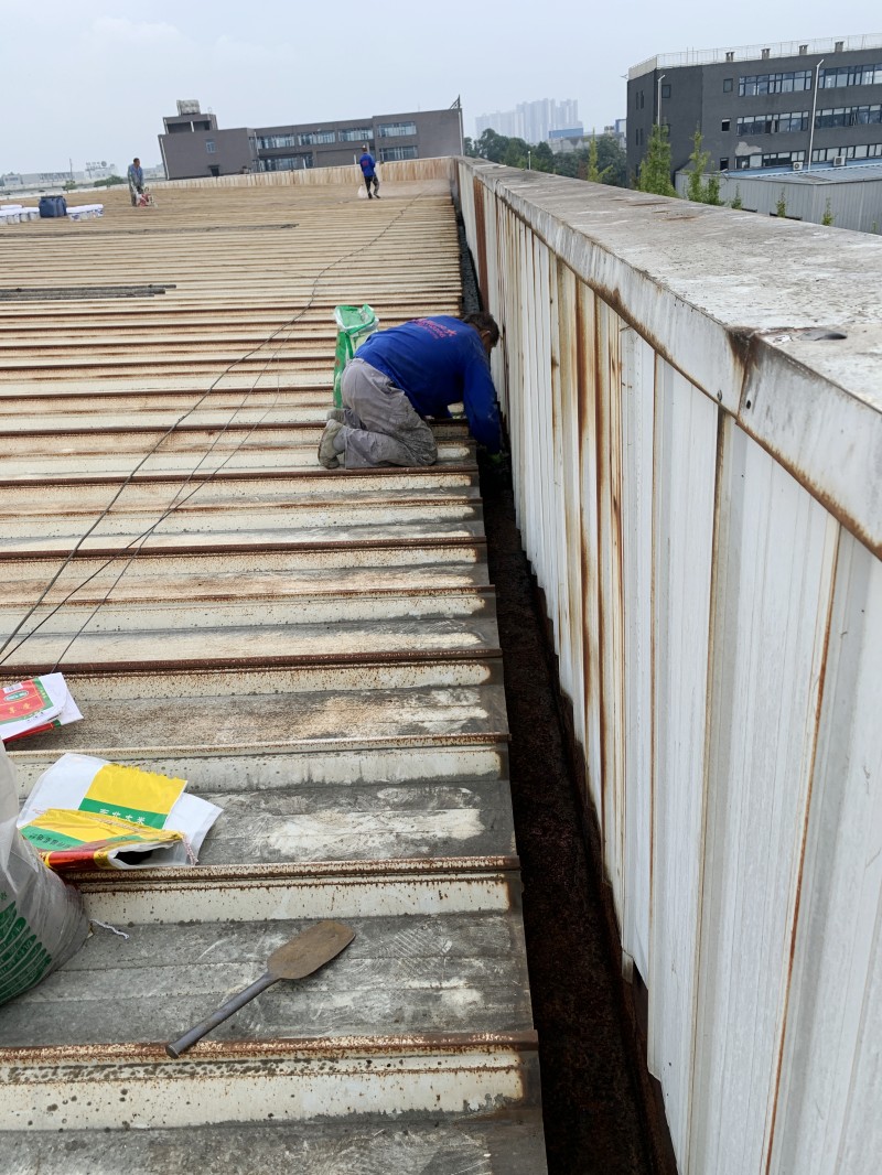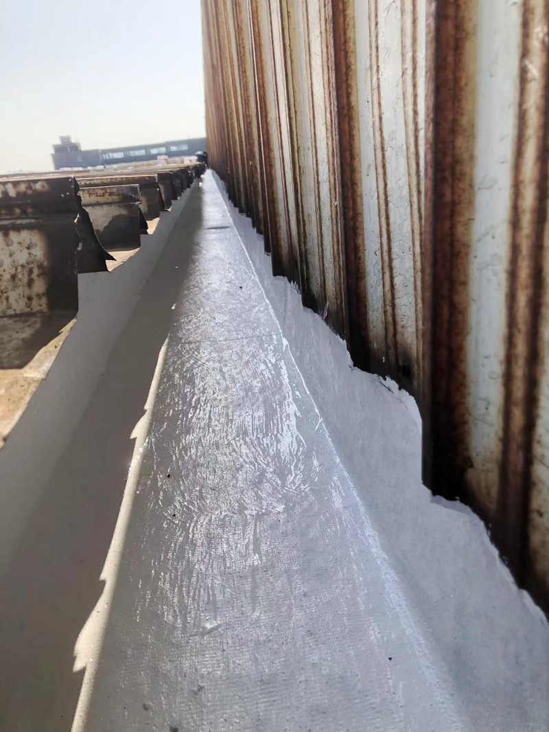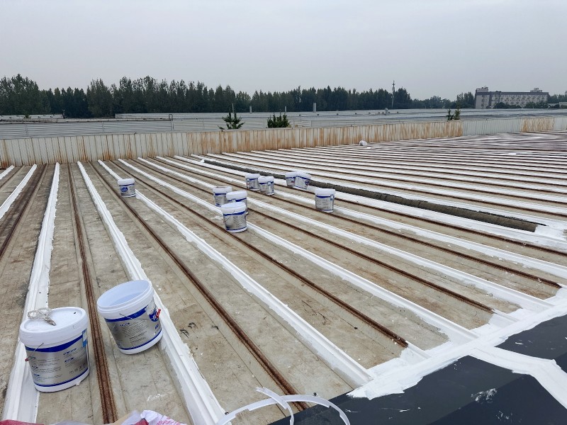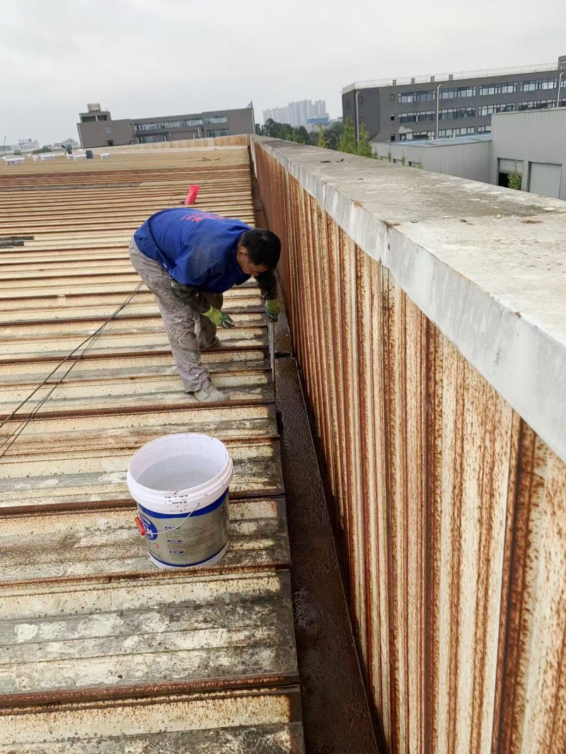 接下來,蜀禹防水公司采用了納米固銹進行基面固化處理。這一步驟能夠防止彩鋼瓦表面生銹,并進一步增強基面的附著力,使防水涂料更好地與基面結合,從而提高防水層的穩定性和耐久性。