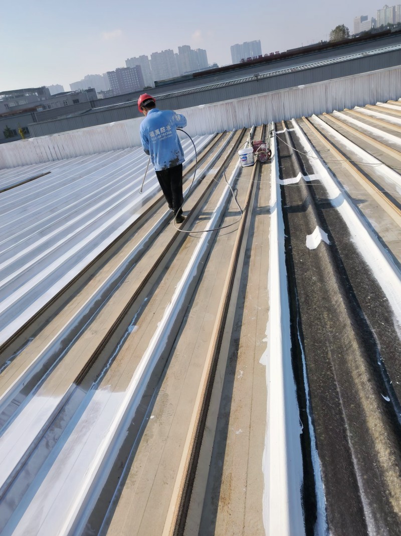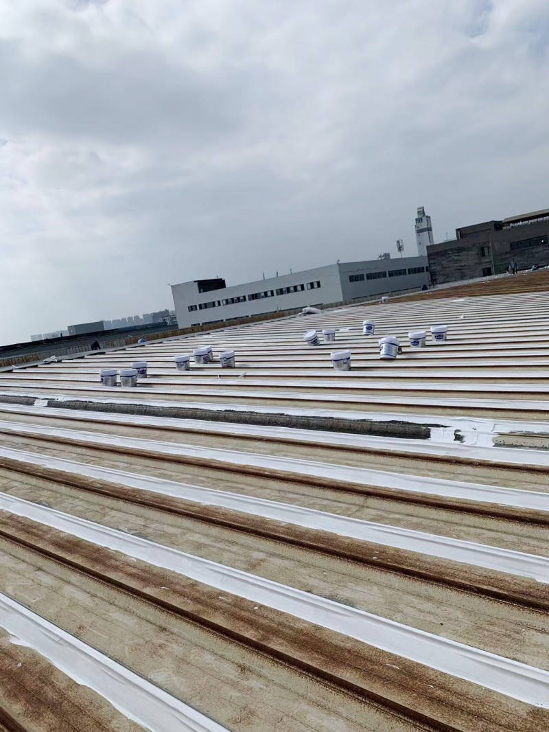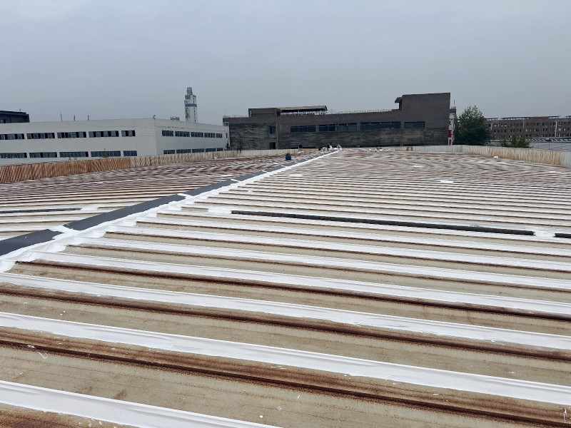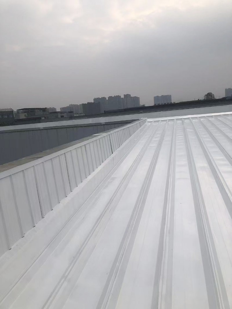 最后,在整個彩鋼頂表面,蜀禹防水公司滿噴涂了兩遍SYR金屬屋面涂料進行防腐翻新。這一步驟不僅能夠美化彩鋼頂的外觀,還能夠增強其抗腐蝕能力,延長其使用壽命。