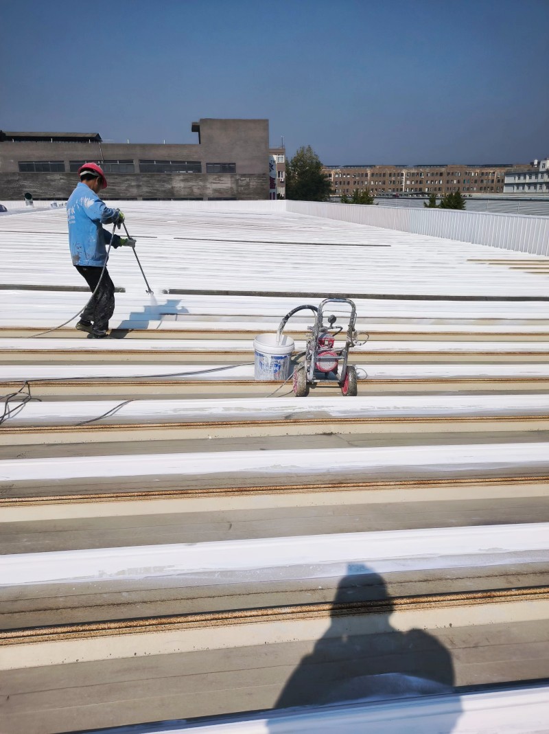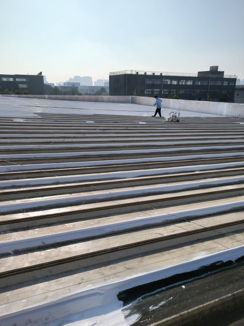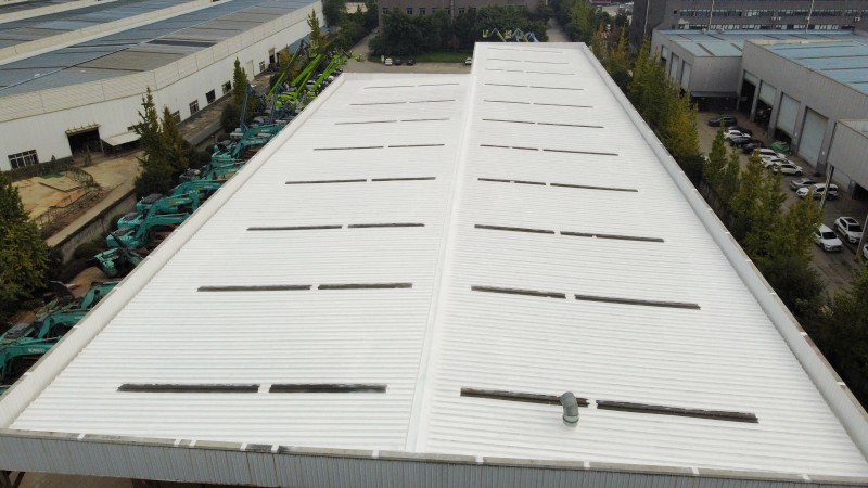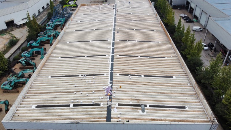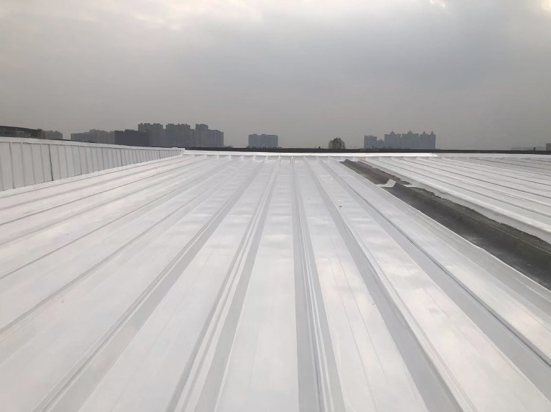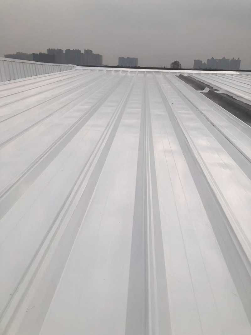 最后,在整個彩鋼頂表面,蜀禹防水公司滿噴涂了兩遍SYR金屬屋面涂料進行防腐翻新。這一步驟不僅能夠美化彩鋼頂的外觀,還能夠增強其抗腐蝕能力,延長其使用壽命。