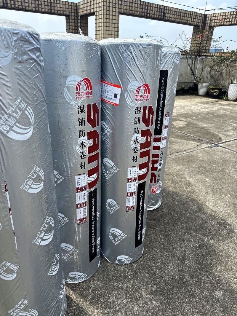 在基層處理完畢后,施工隊伍開始鋪設(shè)濕鋪自粘瀝青防水卷材。這種防水卷材具有優(yōu)秀的防水性能和粘結(jié)性能,能夠在潮濕的基層上直接鋪設(shè),大大縮短了施工周期。同時,為了確保防水層的完整性,施工隊伍在屋頂露天表面全部滿做了防水卷材,確保每一個角落都得到了有效的保護。