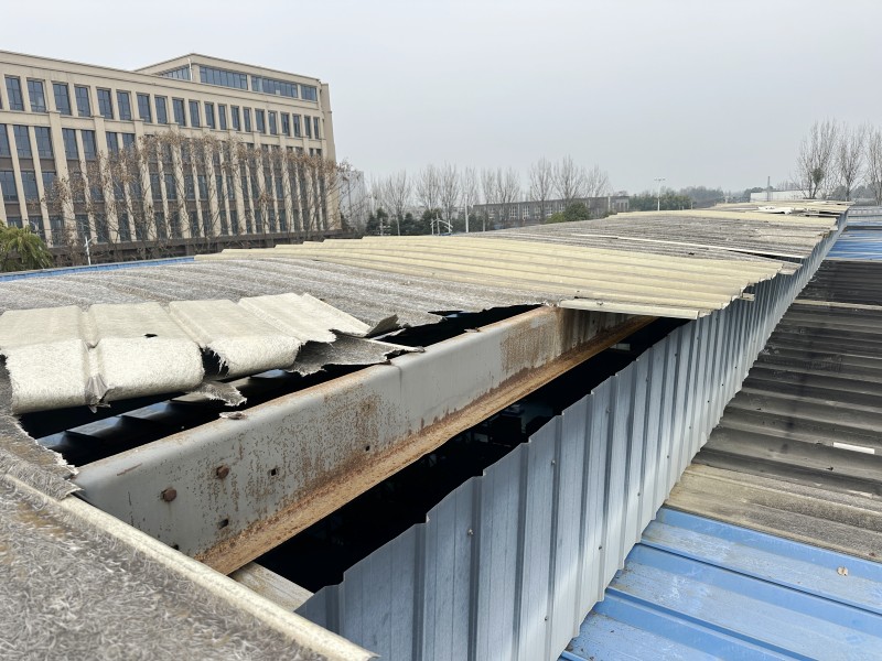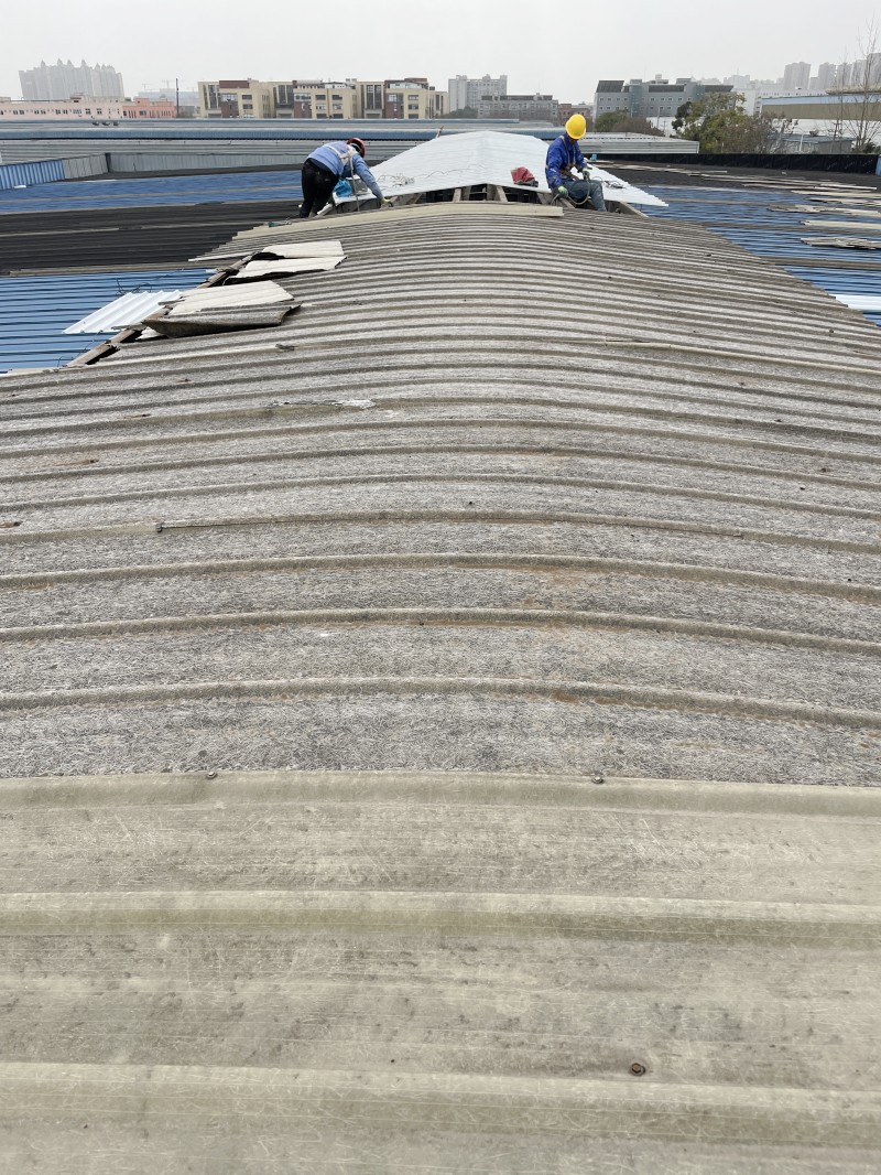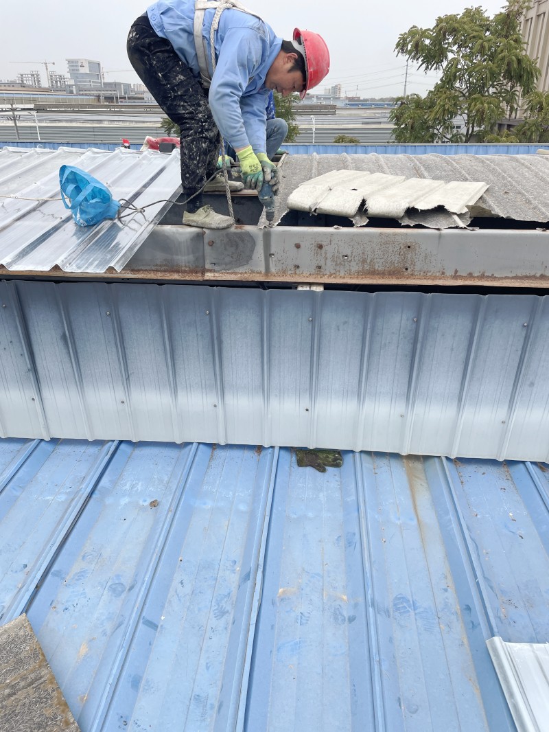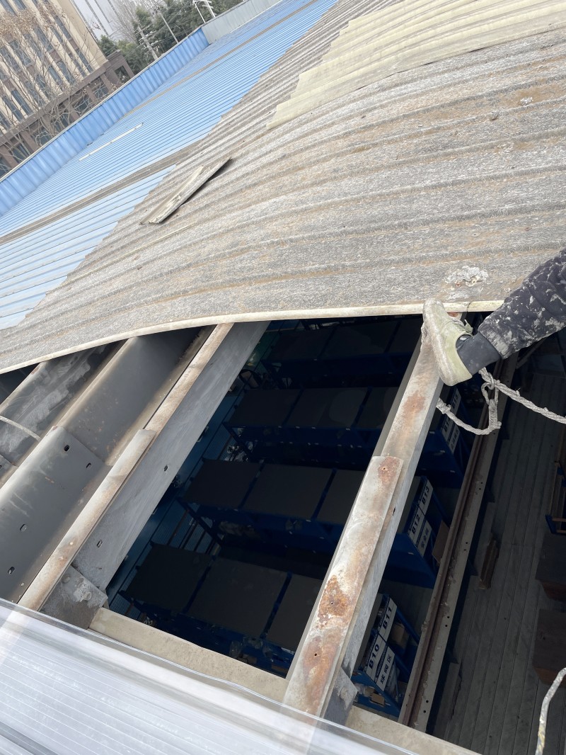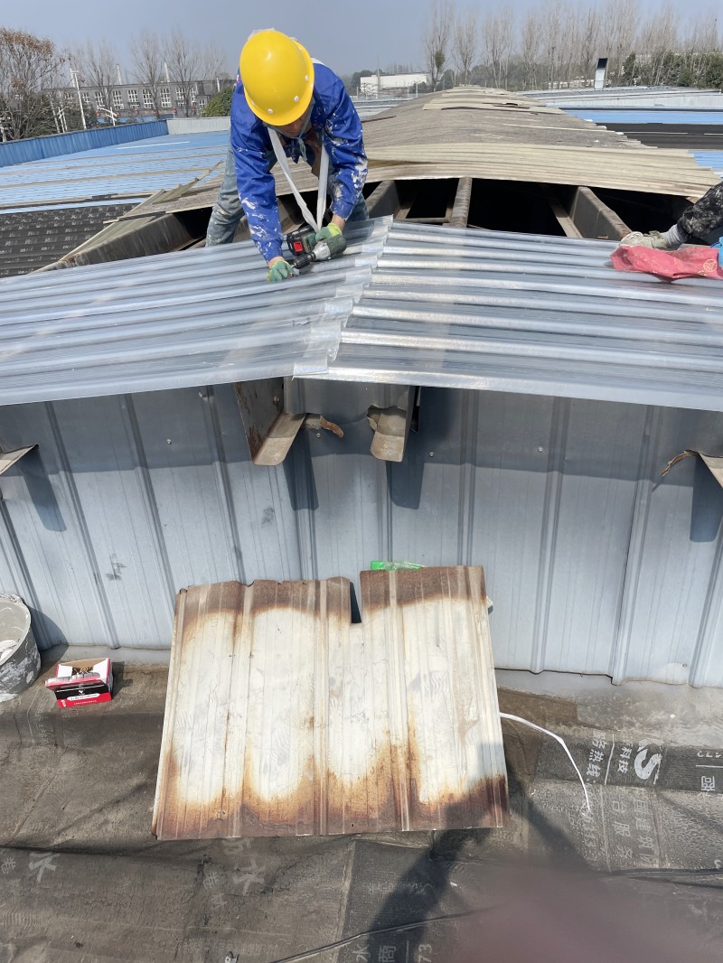 原采光瓦因長期風化已脆化嚴重,拆除過程中需避免碎片墜落損壞廠房設施,同時確保廢舊材料徹底清場。蜀禹團隊采用分段切割、逐塊移除的工藝,并配備專業防護設備,確保施工安全與場地整潔。