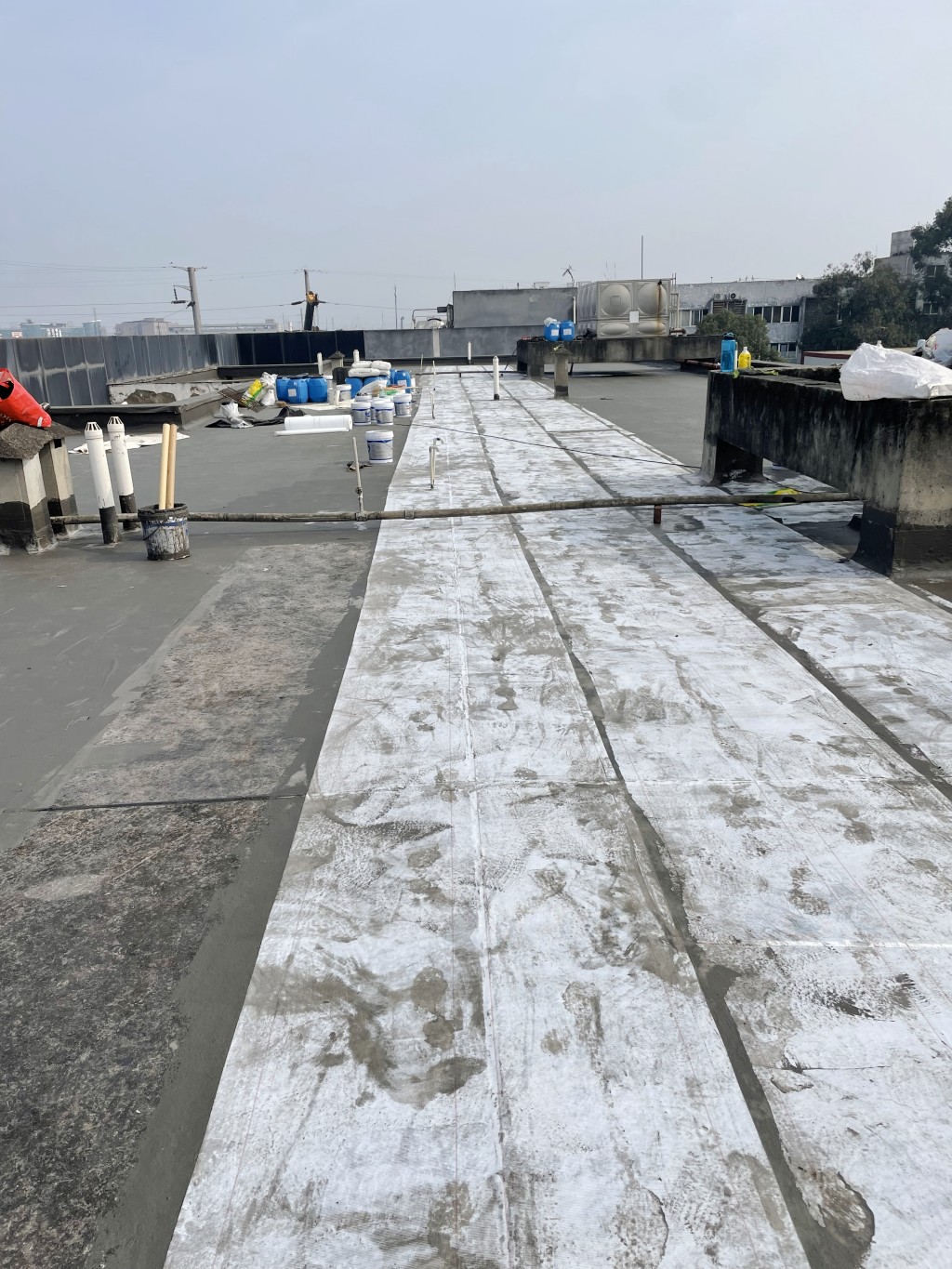 滿做聚合物防水涂料:在修補好的屋頂表面滿做Ⅰ型聚合物防水涂料,該涂料具有良好的粘結性和防水性能,能夠有效滲透到基層孔隙中,形成一道初步的防水屏障。