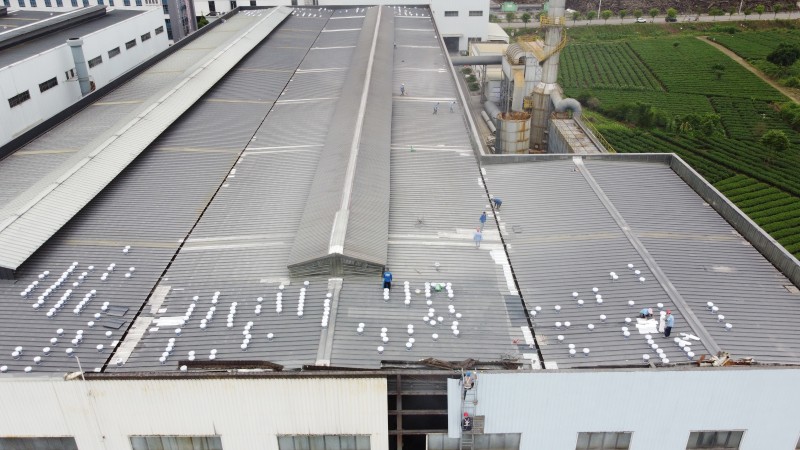 四川合裕鋁業(yè)有限公司 2 號鋼結構廠房已投入使用數年,廠房下方設有高溫鍋爐,特殊的使用環(huán)境與長期的自然損耗,使得屋面逐漸出現較多漏水位置。這一問題不僅影響廠房內部設備的正常運行,還對生產安全與產品質量構成潛在影響。為徹底解決漏水隱患,甲方四川合裕鋁業(yè)有限公司經過多方面考察分析,對不同防水方案的技術可行性、耐用性等進行綜合評估后,最終決定選用蜀禹防水的 SYR 金屬屋面無縫防水系統(tǒng),對 2 號鋼結構廠房彩鋼頂進行防水補漏防腐翻新施工。