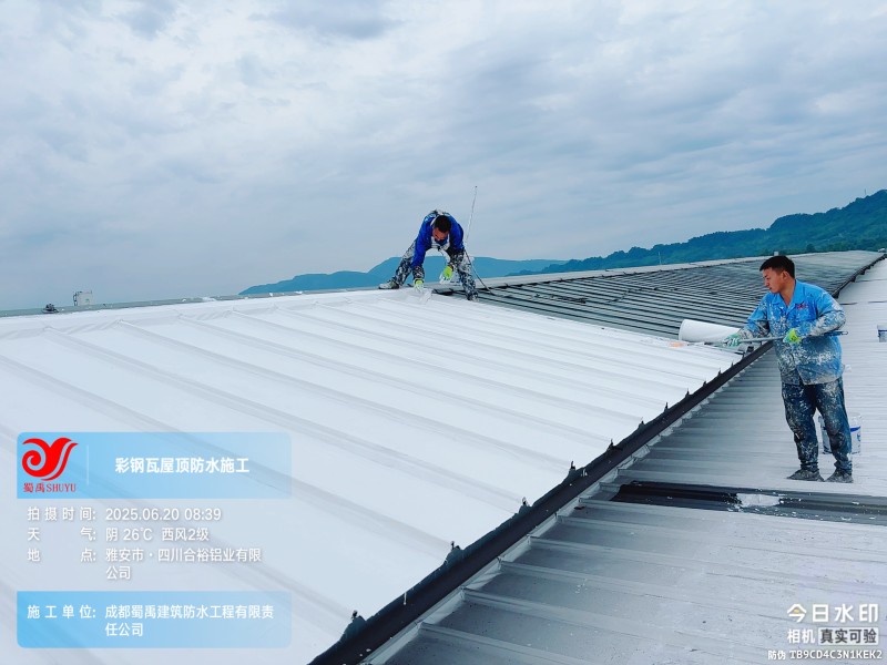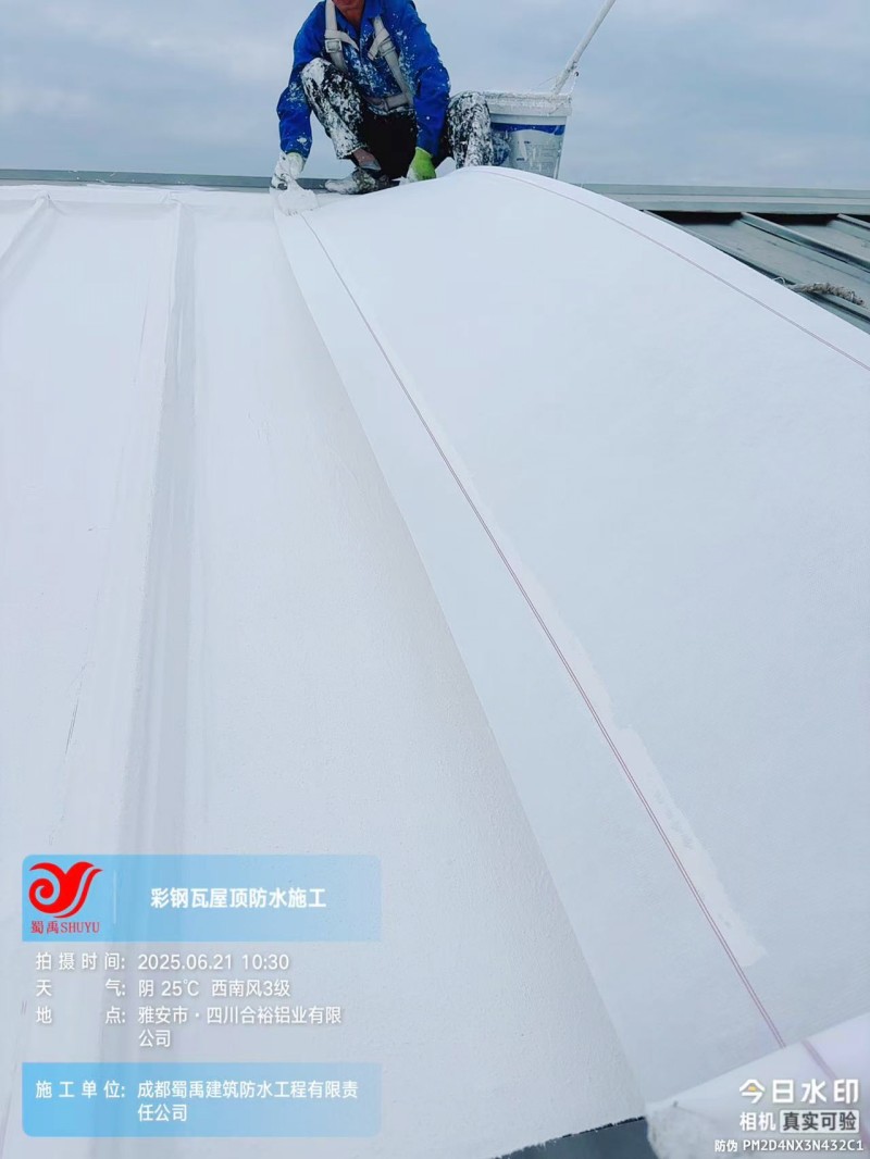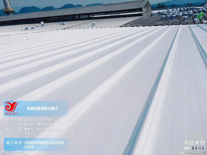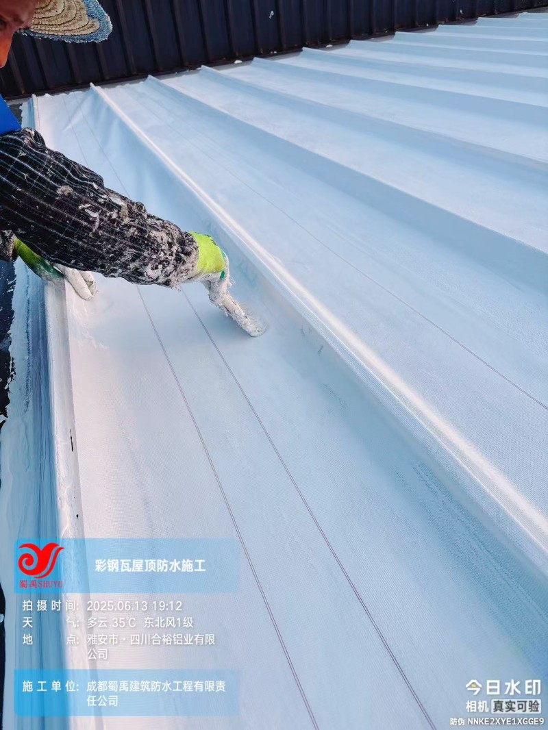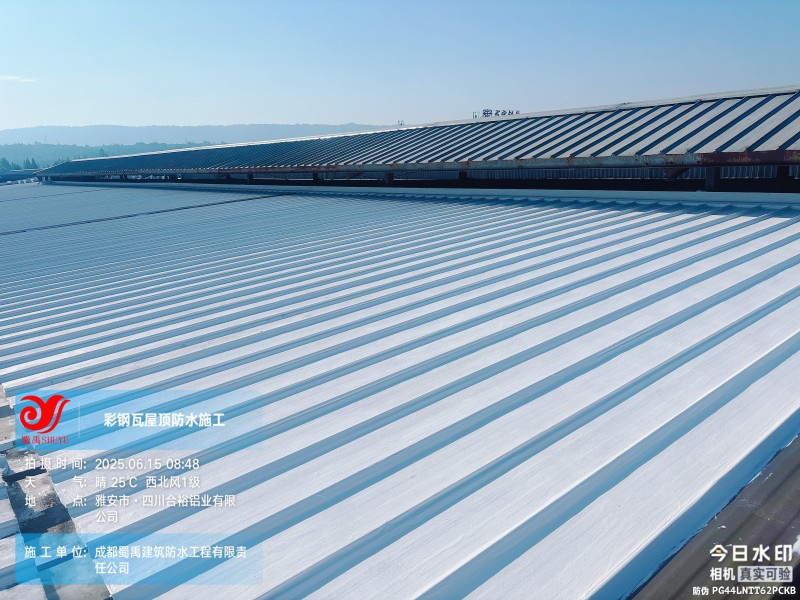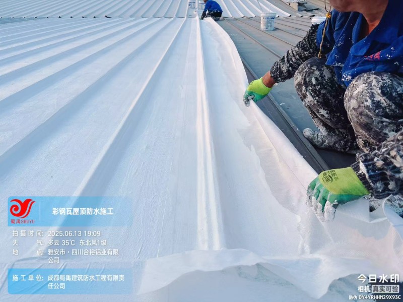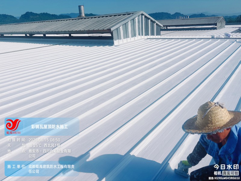 此次四川合裕鋁業(yè) 2 號鋼結構廠房屋頂防水補漏防腐翻新工程,蜀禹防水團隊嚴格按照施工方案與技術標準開展作業(yè),從基面處理到涂層涂刷,每一個環(huán)節(jié)都做到精細化把控。通過采用 SYR 金屬屋面無縫防水系統(tǒng),結合科學的施工流程,成功解決了廠房屋面的漏水問題,同時為彩鋼瓦屋面提供了長期的防腐保護。