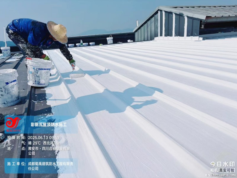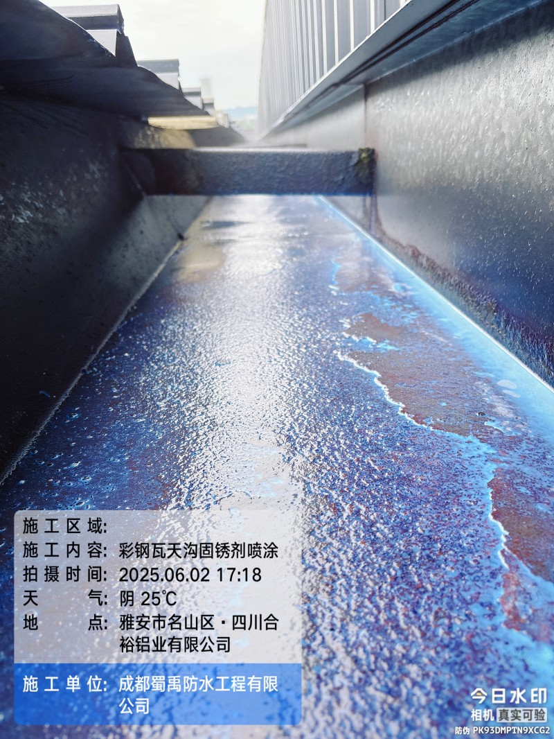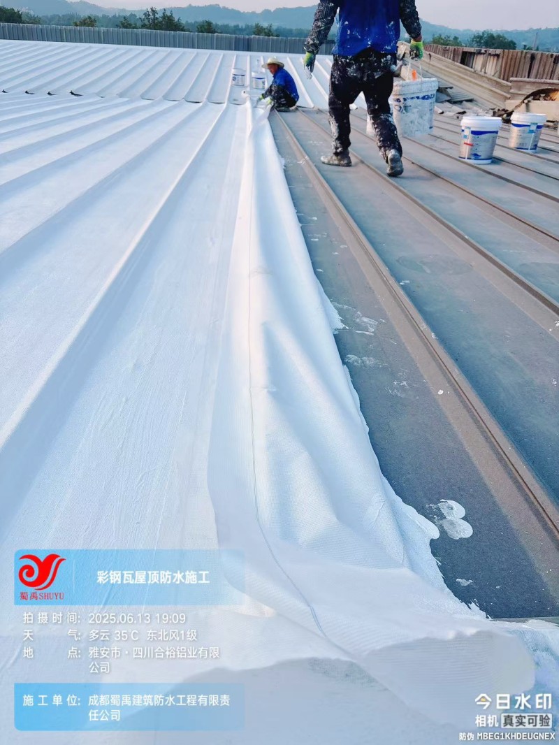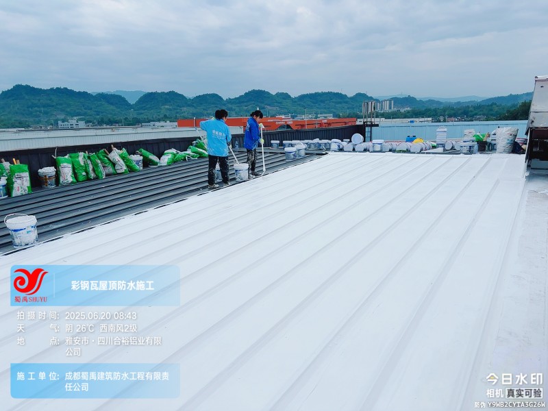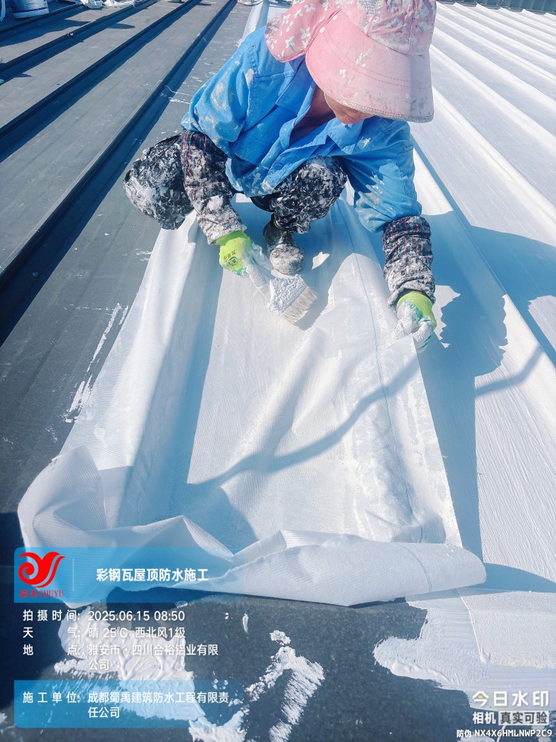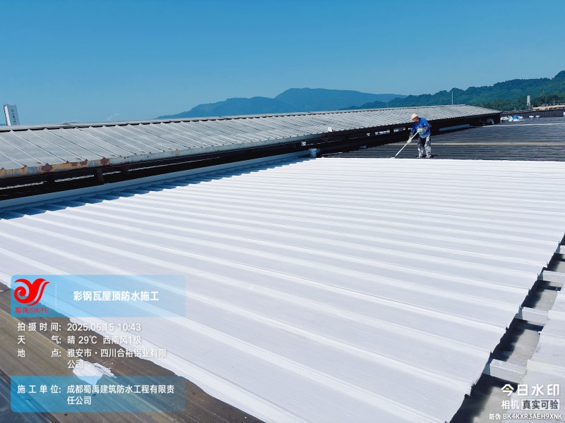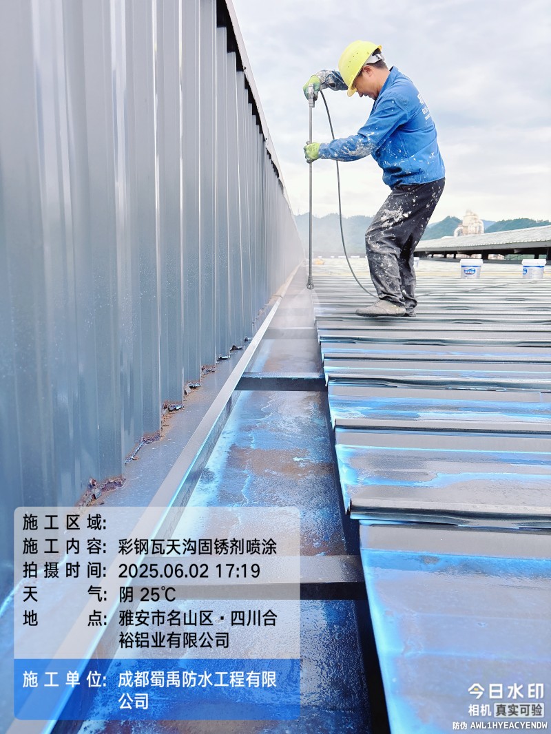 此次四川合裕鋁業(yè) 2 號鋼結構廠房屋頂防水補漏防腐翻新工程,蜀禹防水團隊嚴格按照施工方案與技術標準開展作業(yè),從基面處理到涂層涂刷,每一個環(huán)節(jié)都做到精細化把控。通過采用 SYR 金屬屋面無縫防水系統(tǒng),結合科學的施工流程,成功解決了廠房屋面的漏水問題,同時為彩鋼瓦屋面提供了長期的防腐保護。