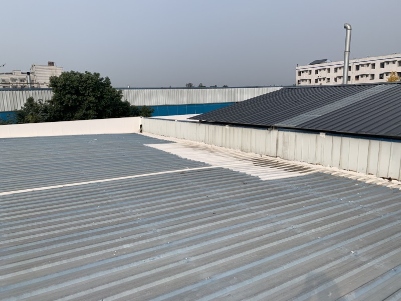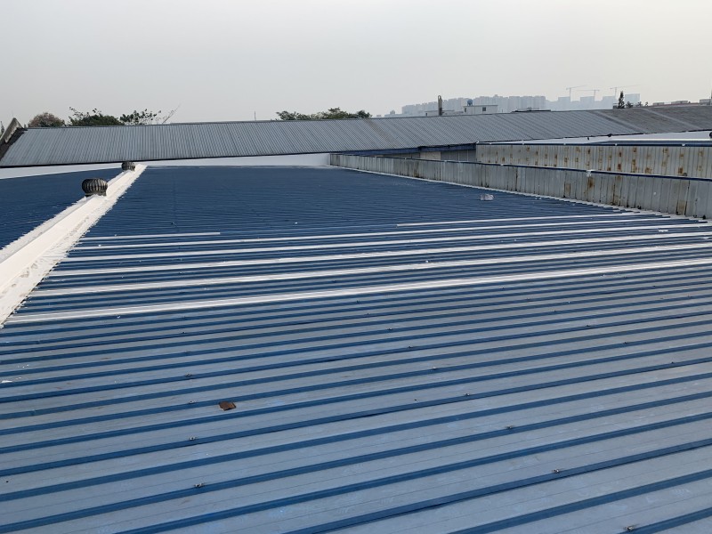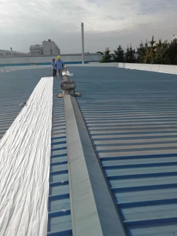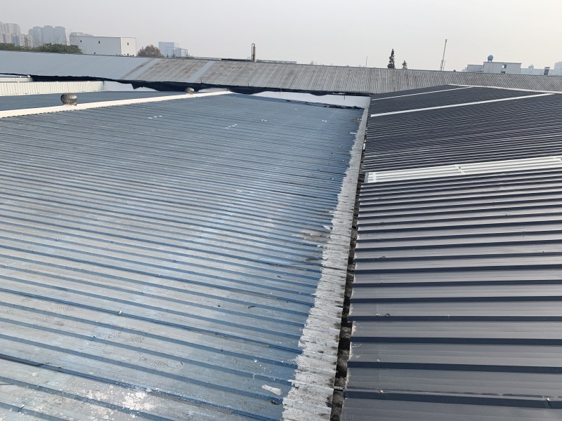 四川省歐朗仕汽車配件有限責任公司彩鋼頂廠房位于成都市雙流區羅漢路,此次處理的廠房為廠區內一、二、四、五、六、七、住宿樓的屋頂防水,彩鋼頂漏水情況以前表現出的現象是,在室內看到是兩邊靠近水溝的位置,下雨的時候從水溝位置漏水下來,后來將水溝全部進行防水處理了,結果下雨的時候還是漏水,搭著梯子仔細檢查才發現,彩鋼頂頂部的個別縫隙也在漏水,水從彩鋼頂斜坡上面漏水到了彩鋼瓦的夾層中,水在夾層中順著斜坡流至斜坡底端才漏下來,結果就是從靠近水溝的位置漏下來,如果不搭著梯子的話,從下面遠遠觀看,就以為是水溝在漏水,后來將漏水位置的上面斜坡部位彩鋼接縫進行防水處理了,再下雨就沒有漏水現象發生了,所以由于彩鋼頂的特殊性,水可能會在彩鋼頂斜坡內順著下滑至底端靠近水溝位置漏水,所以處理彩鋼頂漏水一般要將漏水位置對應的上面斜坡位置都進行防水處理才行。