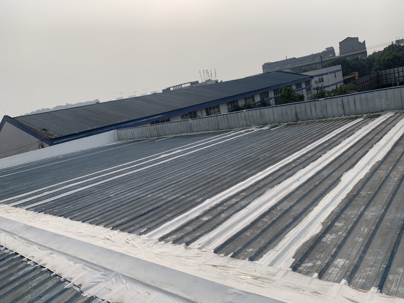 我公司承接的四川省歐朗仕汽車配件有限責任公司彩鋼頂防水工程施工,采用本公司出品的SYR金屬屋面專用防水涂料配合專用縫織聚酯布形成的金屬屋面防水系統,一次性徹底解決彩鋼頂漏水難題。